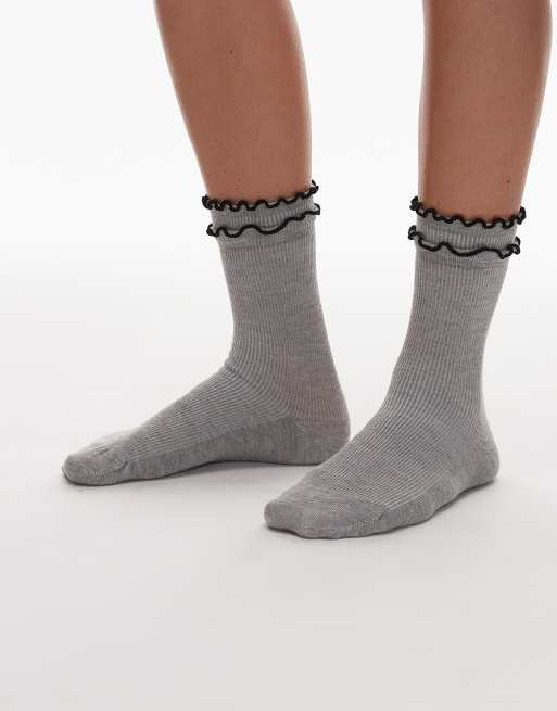 Calcetines gris jaspeado con dos volantes con ribete negro Daphne de Topshop