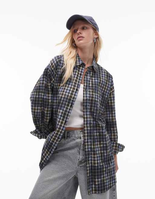 Camisa azul a cuadros extragrande de Topshop