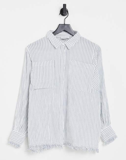 Camisa azul a rayas con borlas y diseño lavado de Topshop