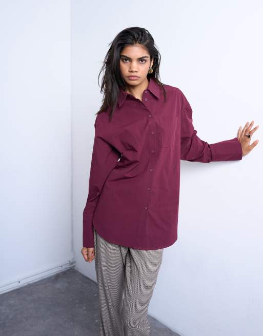 Camisa burdeos extragrande con cintura entallada de popelina de Topshop