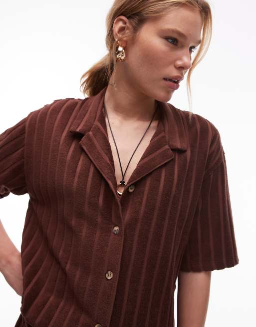 Camisa marrón chocolate de corte cuadrado de tejido rizado de Topshop (parte de un conjunto)