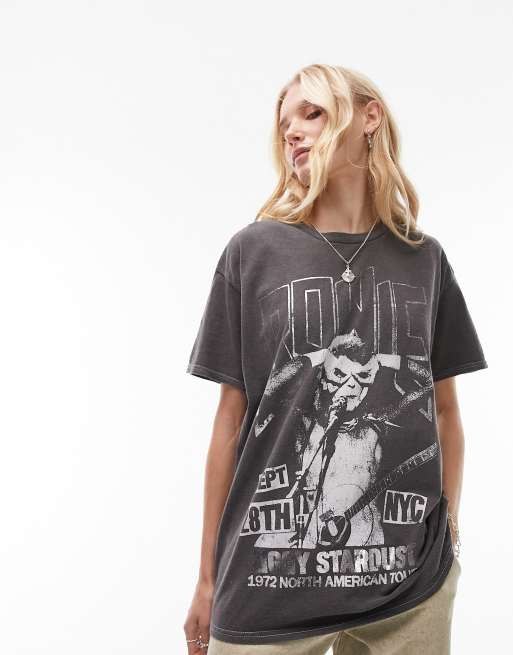 Camiseta extragrande con lavado negro y estampado gráfico metalizado con licencia de Bowie de Topshop
