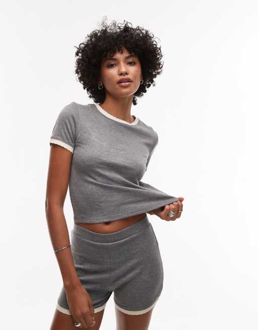Camiseta gris jaspeado con volante en contraste en los bordes Everyday de Topshop