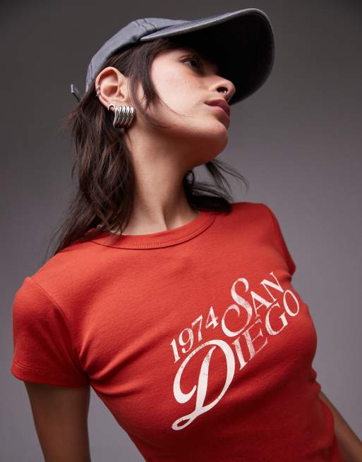 Camiseta larga roja con estampado "San Diego" de Topshop