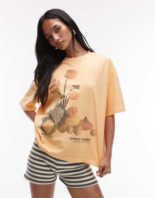 Camiseta naranja extragrande con estampado gráfico de flores de Topshop