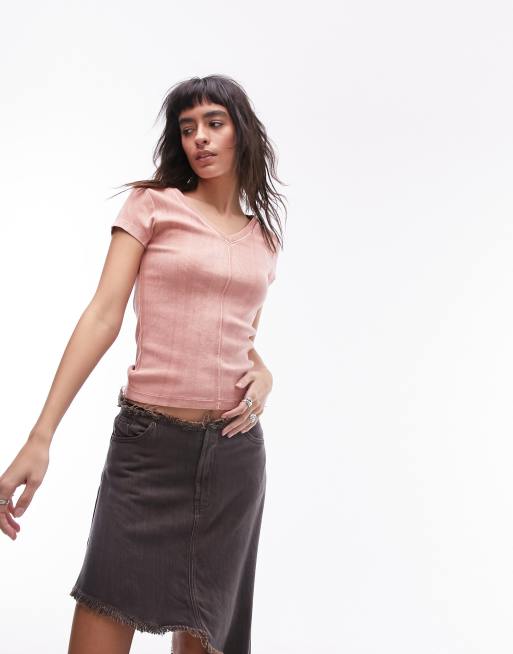 Camiseta rosa con cuello de pico y lavado ácido de Topshop