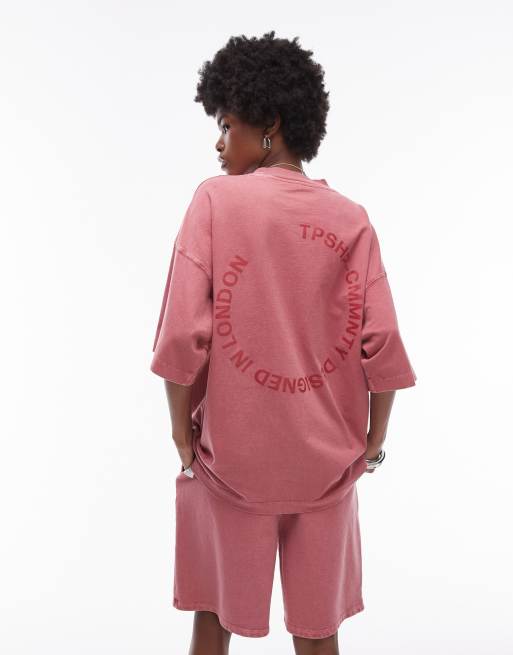 Camiseta rosa lavado extragrande con estampado gráfico Community de Topshop (parte de un conjunto)