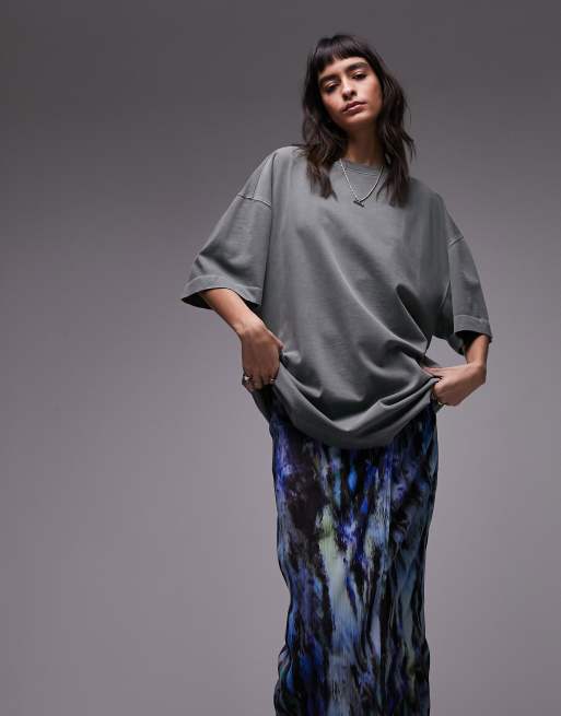Camiseta verde salvia básica de corte alargado ultragrande con cuello redondo y lavado ácido premium de Topshop