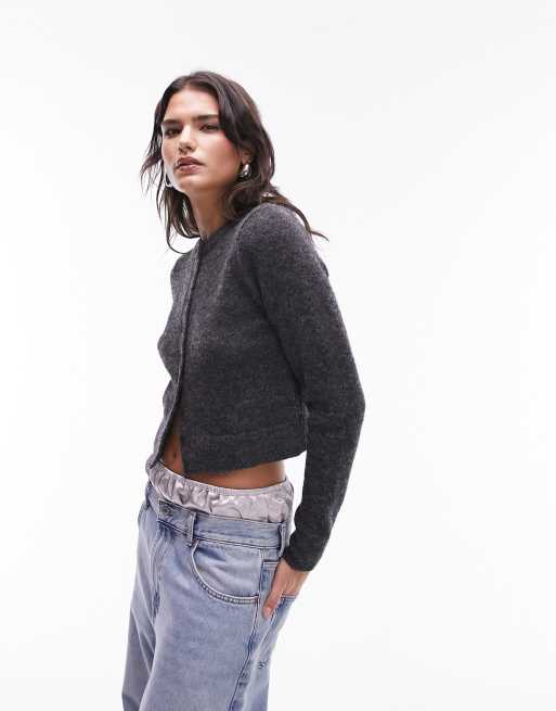 Cárdigan gris carbón de punto microtexturizado de Topshop