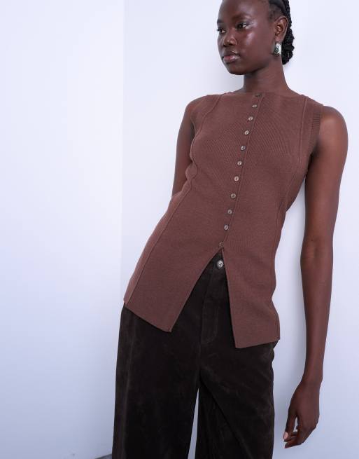 Chaleco de traje largo marrón chocolate de punto de Topshop