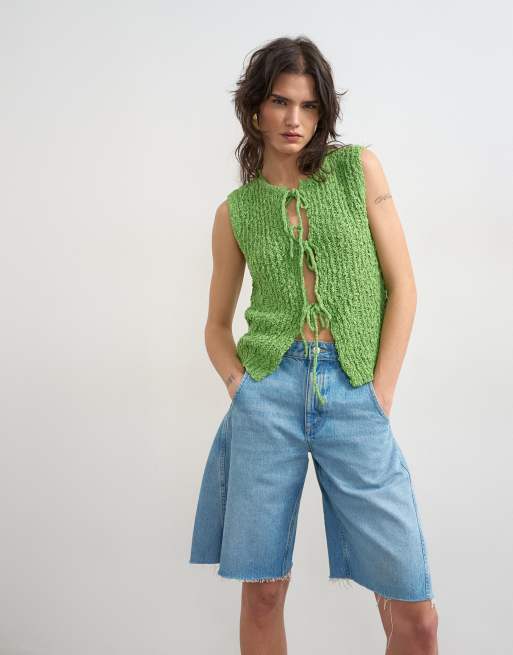 Chaleco verde con lazada delantera de punto texturizado de Topshop