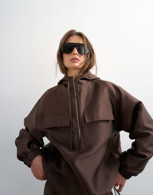 Chaqueta bomber marrón de sarga satinada de Topshop (parte de un conjunto)