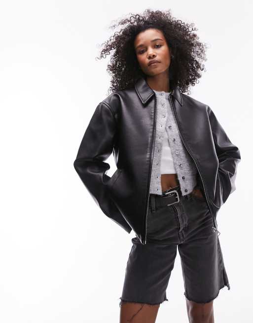 Chaqueta negra de cuero sintético de Topshop
