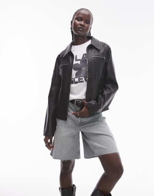 Chaqueta negro lavado ajustada de cuero sintético de Topshop