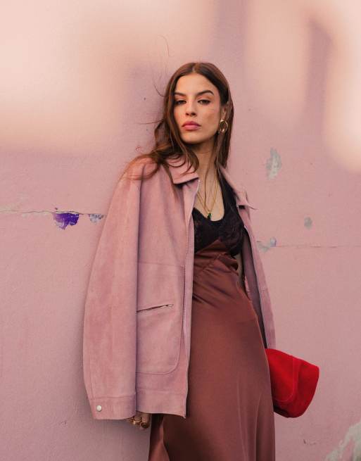 Chaqueta rosa de ante con detalle de costuras premium de Topshop (parte de un conjunto)