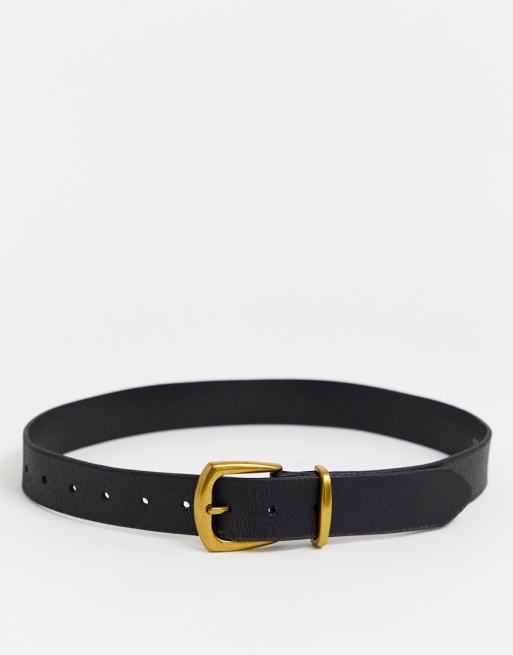 Cinturón de cuero negro con hebilla dorada de Topshop