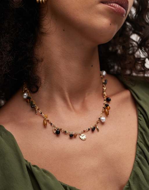 Collar corto marrón de cuentas Flo de Topshop