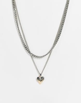 Collar multicadena de varios tonos con colgante de corazón de Topshop