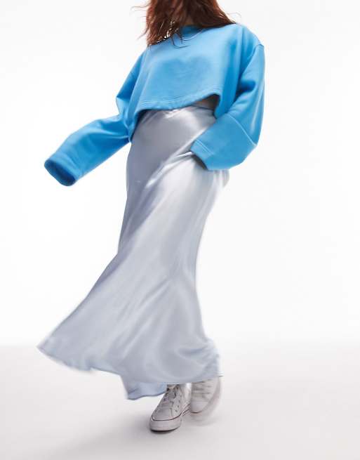 Falda larga azul claro de corte al bies de satén de Topshop Curve