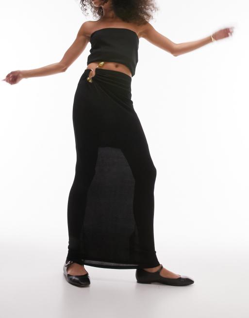 Falda larga negra ceñida con detalle de ribete de Topshop