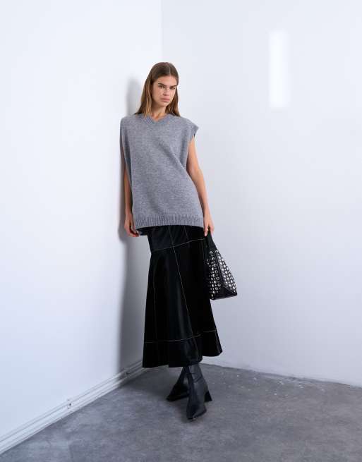 Falda larga negra de poliuretano con cintura baja y costuras en contraste de Topshop
