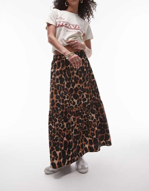 Falda midi escalonada con estampado de leopardo de algodón de Topshop