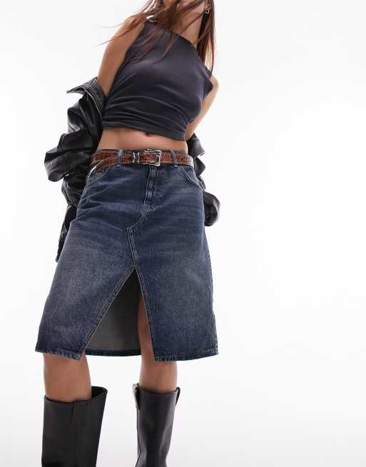 Falda midi verde deslucido por la rodilla con abertura delantera de Topshop