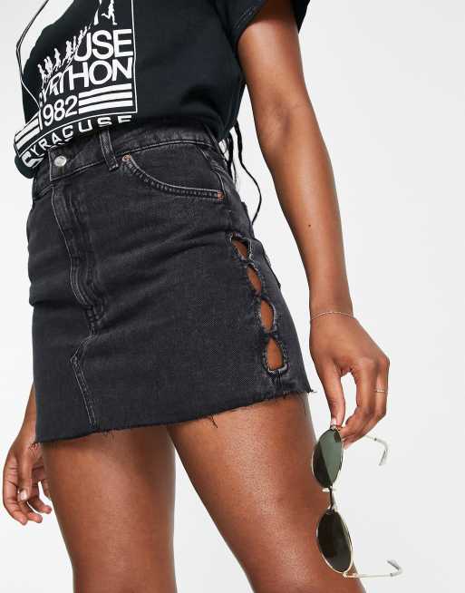 Falda vaquera con lavado negro y aberturas de Topshop