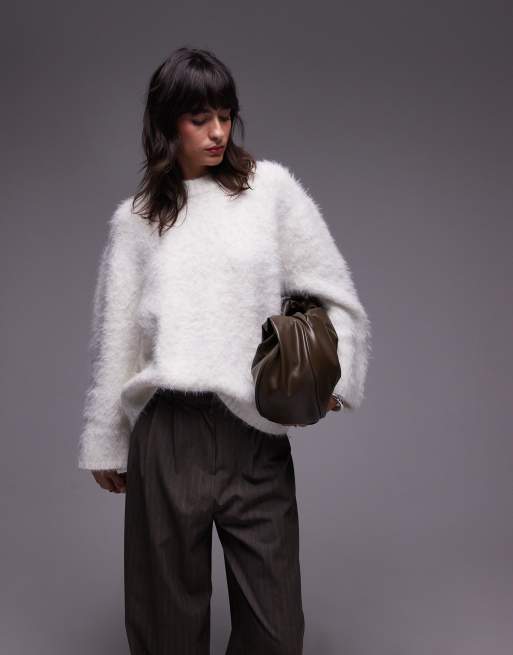 Jersey blanco marfil extragrande de punto muy mullido de Topshop