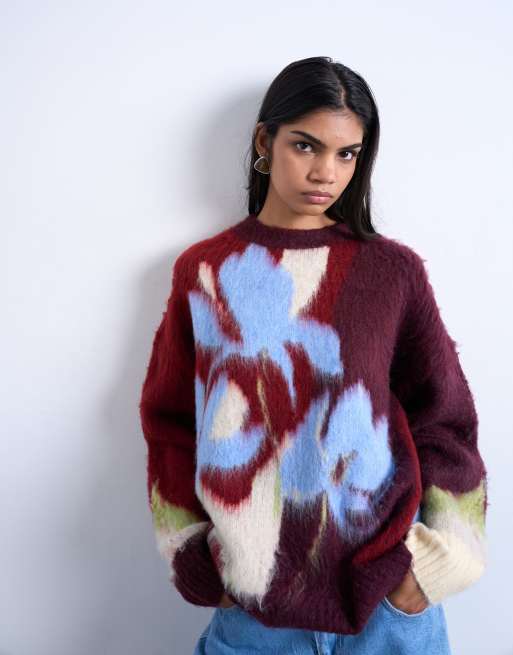 Jersey burdeos con patrón floral difuminado de punto de Topshop