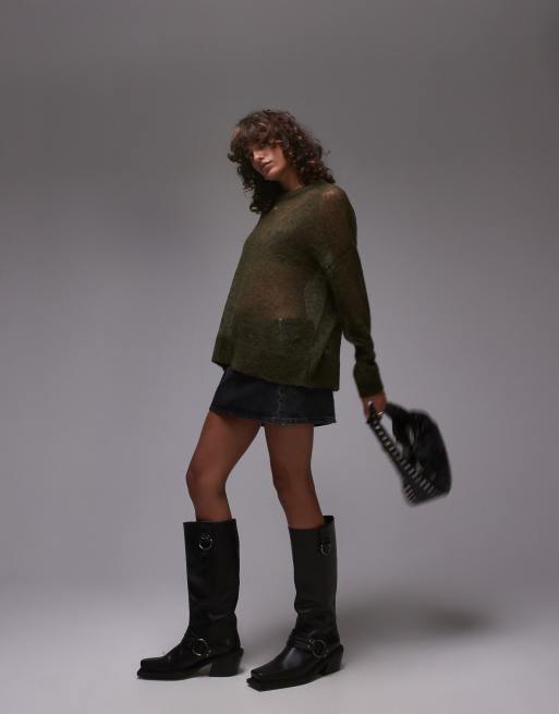 Jersey caqui traslúcido de corte alargado de punto de Topshop