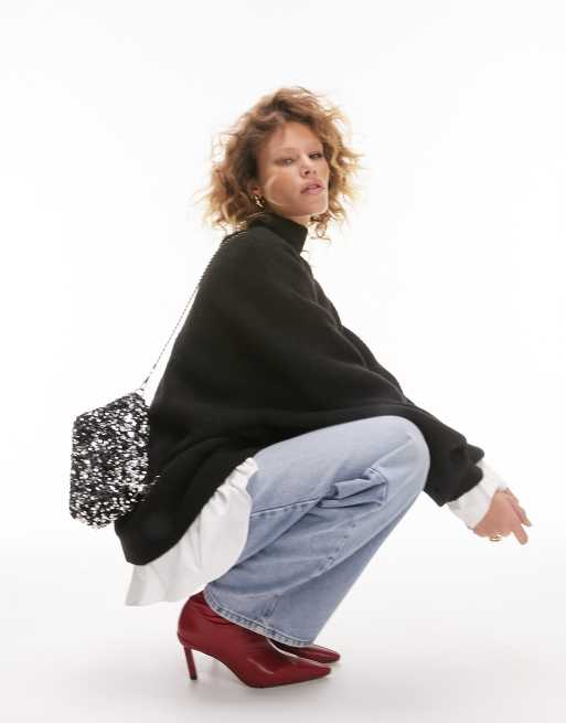 Jersey largo negro con cuello alzado de punto de Topshop