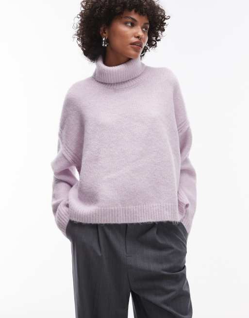 Jersey lila holgado con cuello vuelto y costuras a la vista de punto de Topshop