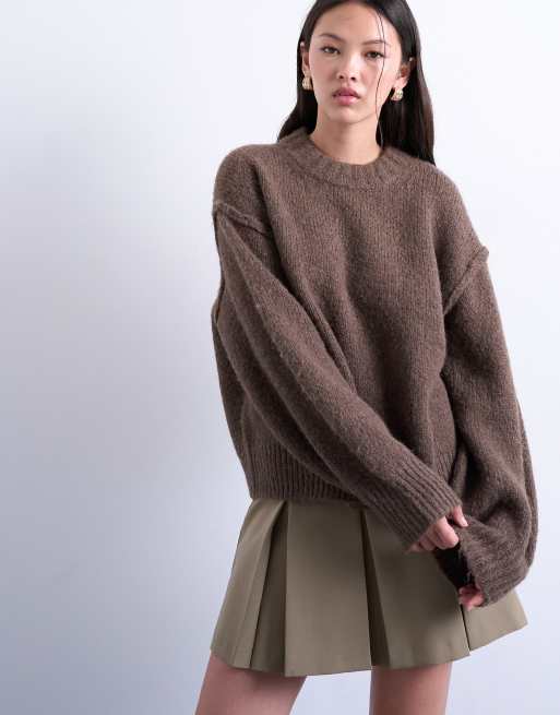 Jersey marrón sencillo con costuras a la vista de punto mullido de mezcla de lana de Topshop