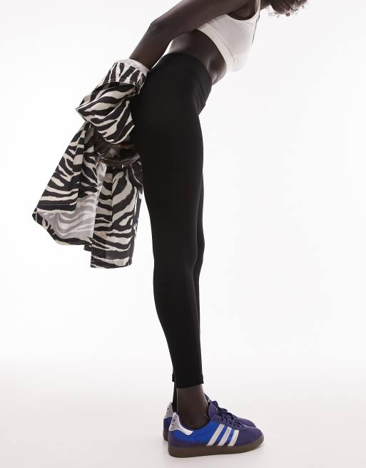 Leggings largos negros con cinturilla ancha de punto grueso de Topshop Petite