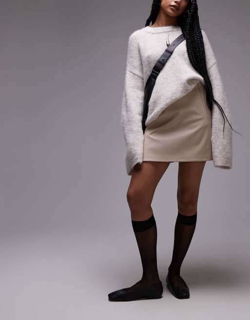 Minifalda beis rosado con bajo escalonado de cuero sintético de Topshop Petite