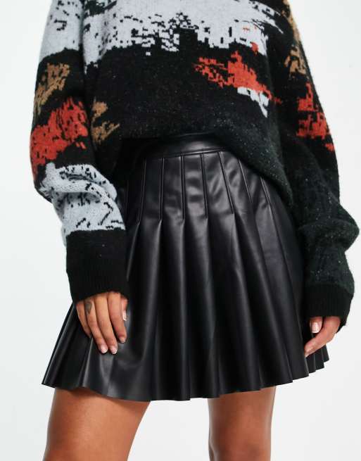 Minifalda negra plisada de tejido efecto cuero de Topshop