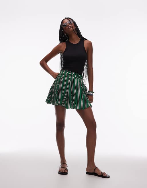 Minifalda verde a rayas con vuelo y godets de algodón de Topshop