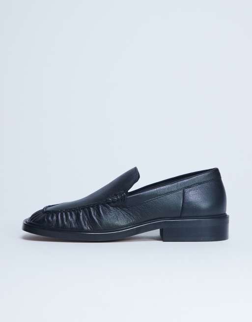 Mocasines negros con detalle fruncido de cuero auténtico premium Clover de Topshop