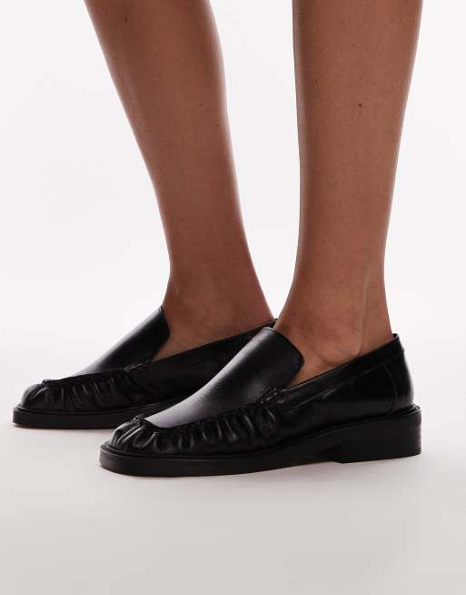 Mocasines negros con detalle fruncido de cuero premium Clover de Topshop