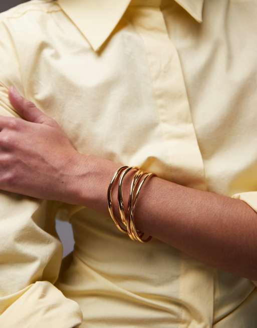 Pack de 2 pulseras doradas sin cierres rígidas Brooklyn de Topshop
