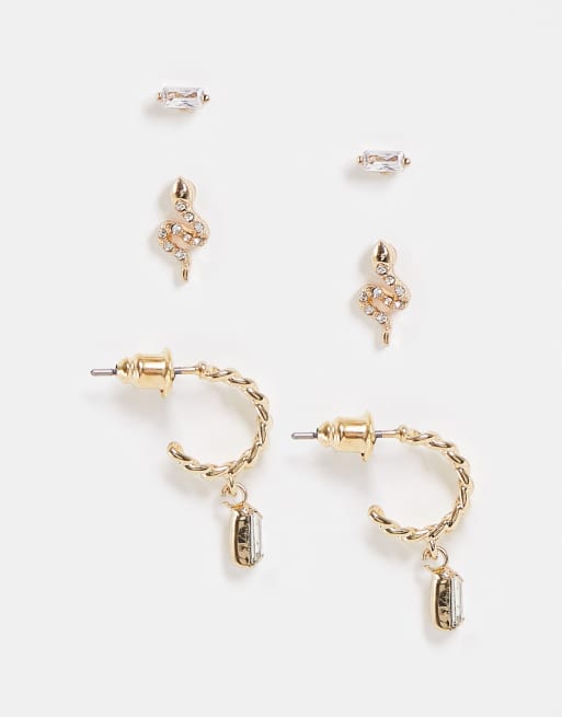 Pack de 3 pendientes dorados con diseño de serpiente y con cristales de Topshop