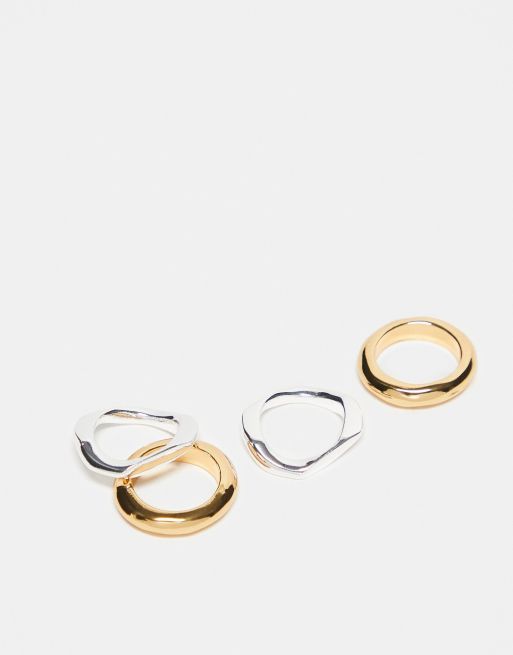 Pack de 4 anillos de varios tonos con diseños efecto fundido Rory de Topshop