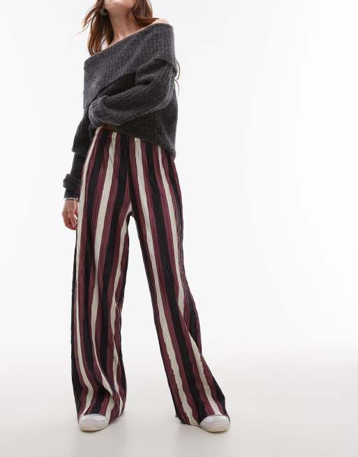 Pantalones burdeos a rayas plisados de pernera ancha de Topshop