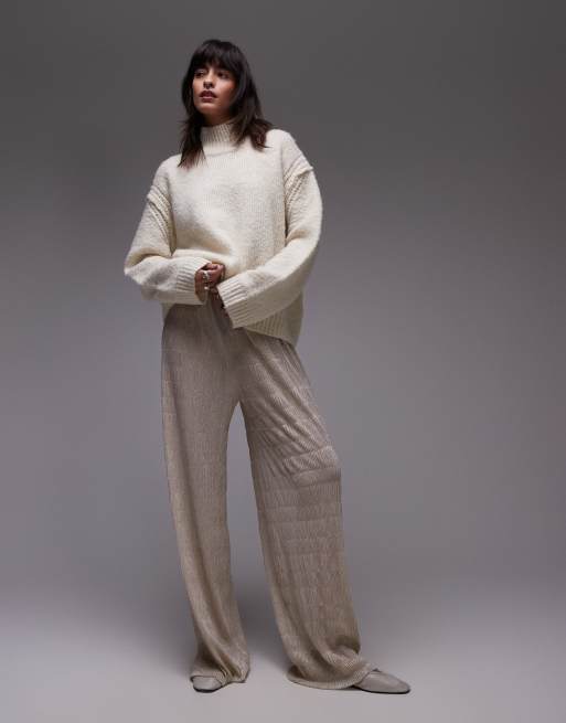 Pantalones dorado metalizado traslúcidos de tejido rugoso de Topshop