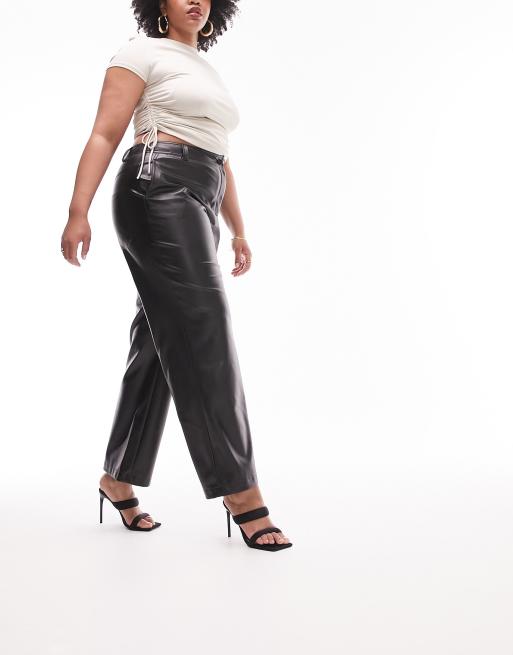 Pantalones negros de pernera ancha de cuero sintético de Topshop Curve