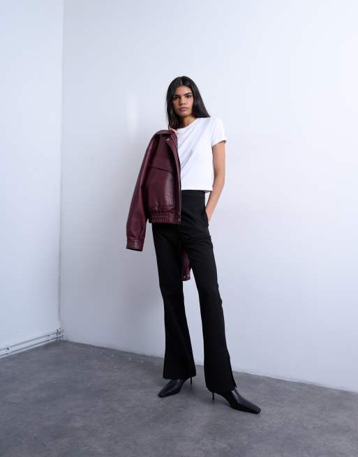 Pantalones negros de talle alto y corte acampanado con abertura de Topshop