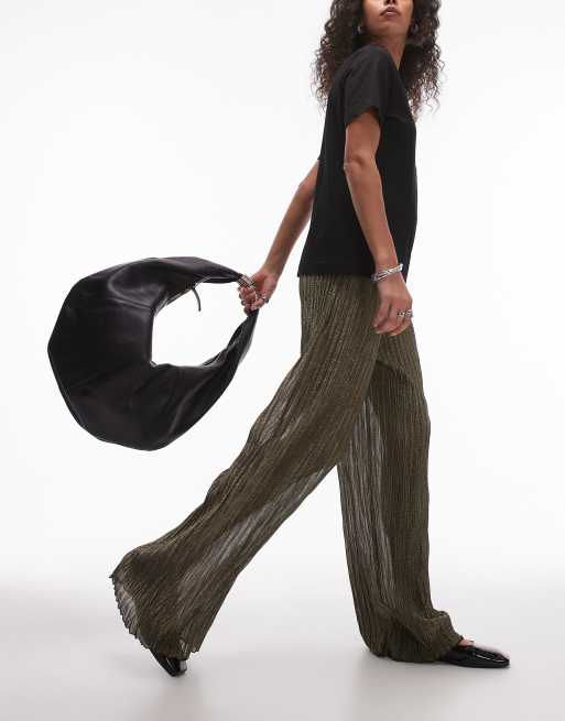 Pantalones negros y dorados de pernera ancha de tejido metalizado transparente de Topshop