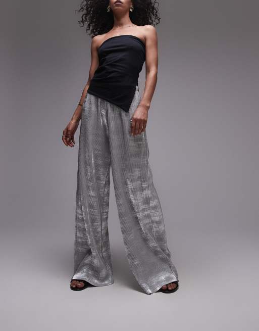 Pantalones plateados plisados con estampado metalizado de Topshop