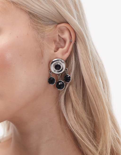 Pendientes plateados y negros con diseño colgante Becca de Topshop